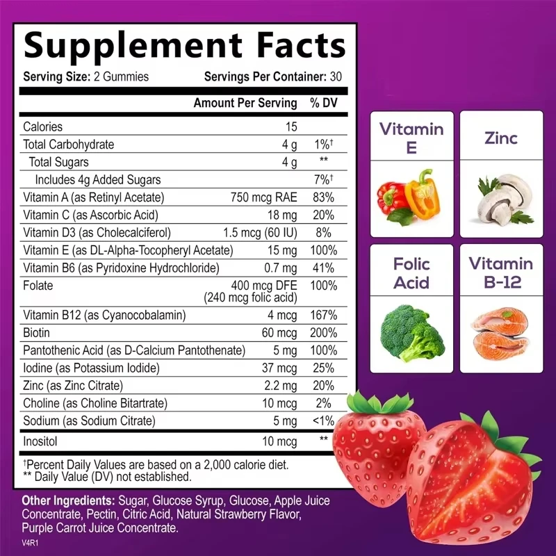 Adult Gummy Multivitamin, Suitable for Both Men and Women – Immune Health Support, Berry Flavored -60 Capsules