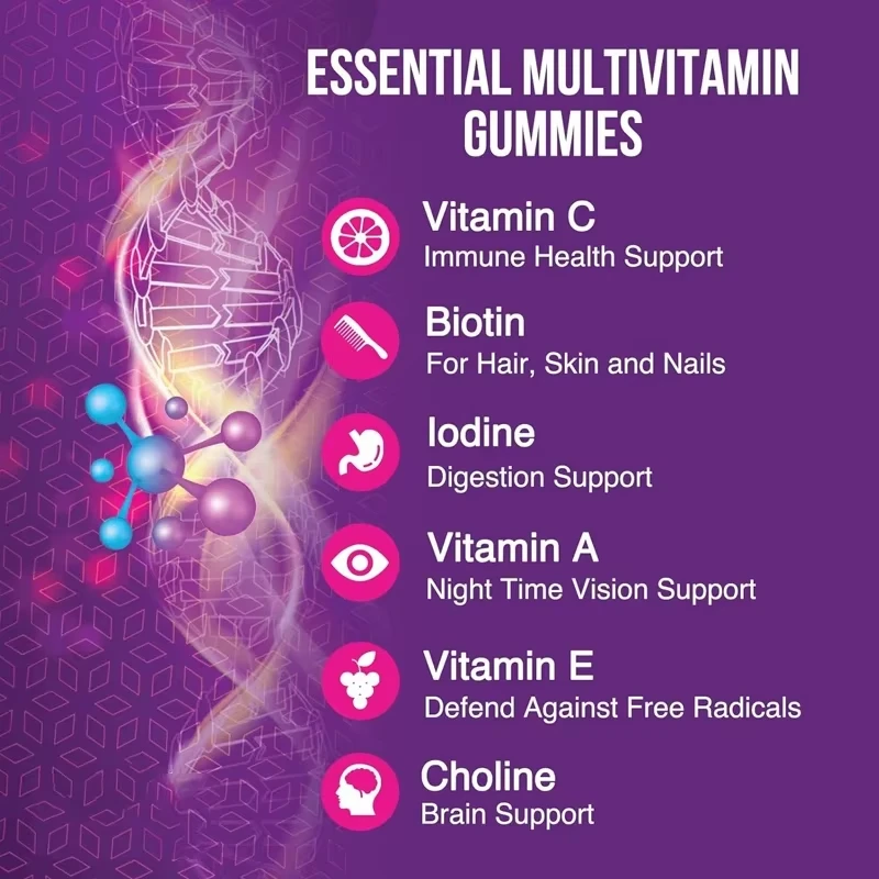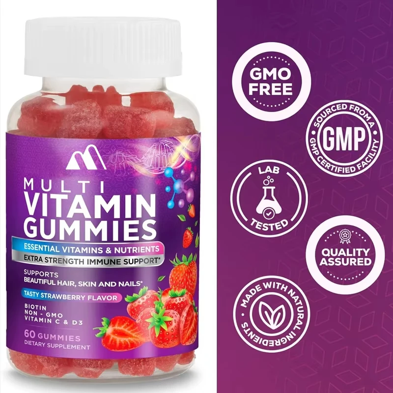 Adult Gummy Multivitamin, Suitable for Both Men and Women - Immune Health Support, Berry Flavored -60 Capsules quantity