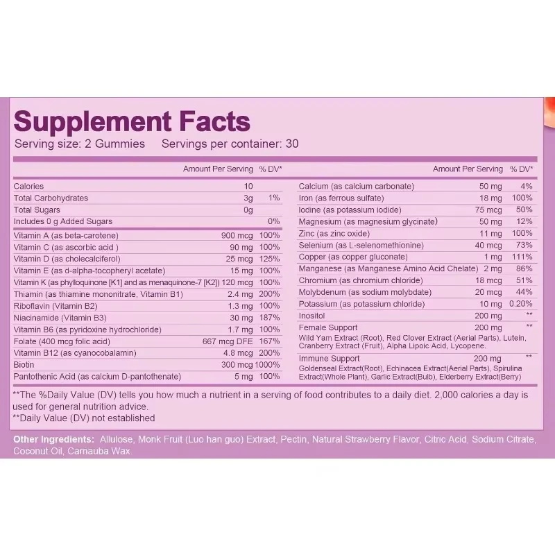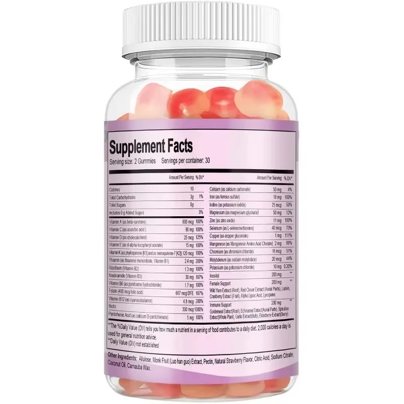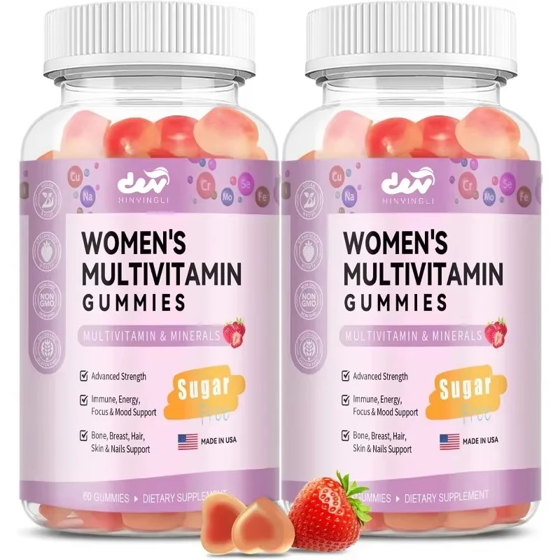 Sugar free multivitamin gummies, women’s daily multivitamin gummies, support hair, skin, energy, and immunity-60pills
